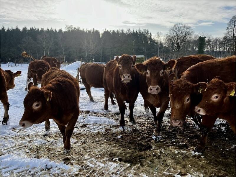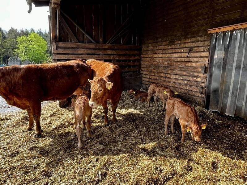 Wie ihr seht wird Tierwohl bei uns sehr groß geschrieben, was man auch an unserem großzügigen Stall sieht, in denen unsere Limousin-Rinder gemütlich auf Stroh stehen bzw. liegen.